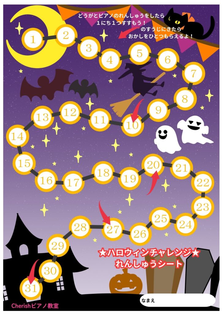 10月は、動画教材とピアノに取り組んで、指定された番号まで来るとお菓子を1つもらえる、という課題に1カ月間チャレンジしてもらいました!